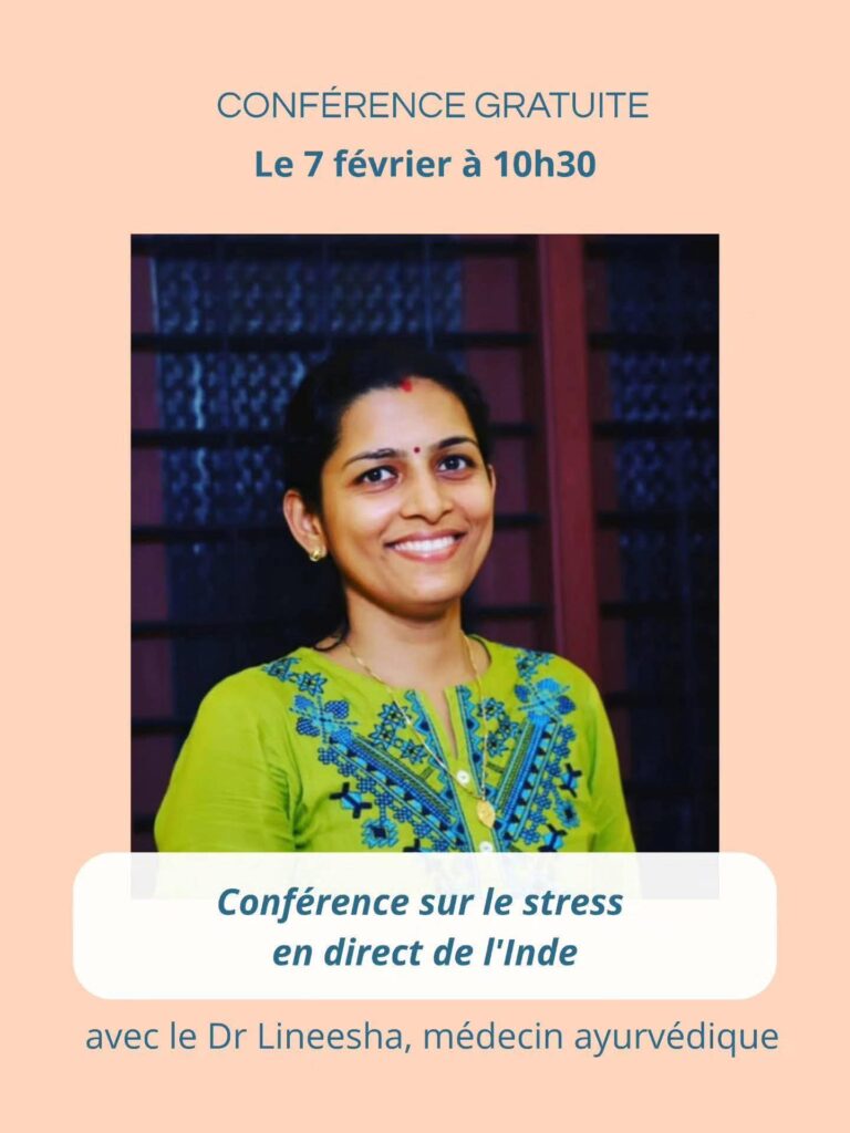 Je vous propose une conférence en direct de l’Inde avec le médecin ayurvédique Dr Lineesha, pour vous parler du stress :
